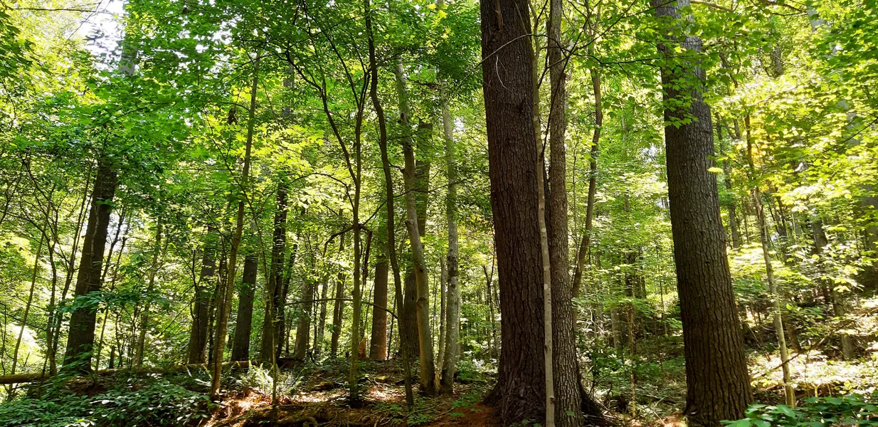 About 90% of the land is wooded, with the rest being in fields. The woods are mainly red oak,