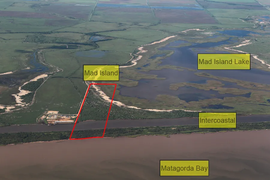 Property is adjacent to a natural gas loading facility on the southwest side and surrounded by nature Conservancy Land and Mad Island Lake on remaining sides. The property has frontage along the north and south sides of the intercoastal canal for approximately 930'.