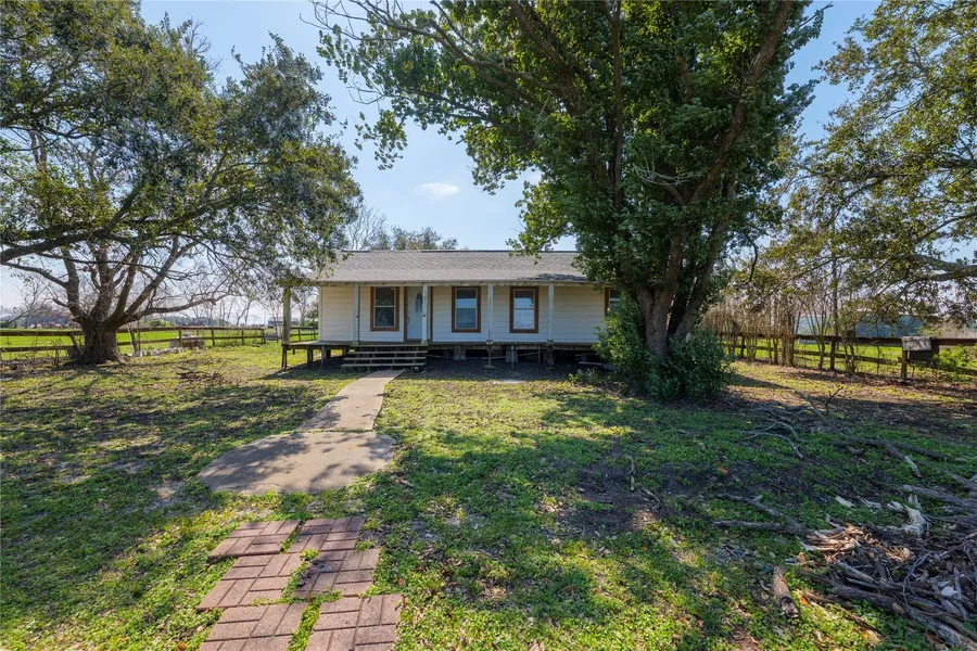 Country living on a private road with a farmhouse, barn, shop & acreage. The land features a completely fenced and gated 6 acres, pastures with Bahia Grass for your livestock, & mature trees. Outbuildings include: Stable Barn w/ 6 ample-sized stalls, & a large workshop.The house is spacious with a great room floor plan: kitchen, dining & living all open to each other with a wall of windows, an extra front room, with front and back porches the length of the home. Many improvements: Beautiful new vinyl plank flooring throughout in 2020, recent new roof, new plumbing underneath home, Central HVAC replaced in 2021, foundation leveled, new fencing on one side and roof cap on barn. The primary bath was completely redone with separate shower, freestanding tub & double sinks. Peaceful area with gorgeous sunset views from the living area. It just needs paint and some more updates to make it your own. Many costly repairs & improvements were done. Close to the fair grounds/arena & Matagorda Bay.