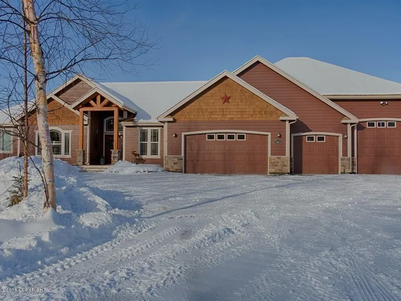 Simply Stunning! Beautiful Ranch, Inside & Out! Built in 2011 by Prestige Custom Homes, this home does not leave much to be desired!!Situated in 2462 sq. ft., this open concept offers large picturesque windows, kitchen with high ceilings, can lighting, custom maple cabinetry with crown molding, granite counter tops, stainless steel appliances, pantry, tiled flooring, (see more)custom lighting package and trim throughout. Real Hardwood flooring, tile and carpet in bedrooms. Rock surround on gas fireplace with custom mantel. 4 bedrooms, 3 full baths, 2 Master Suites (one for the Queen and one for the Princess) Main Master Suite offers a coffered ceiling with ceiling fan and sconce lighting, custom tiled shower with glass door, corner jacuzzi tub (never been used), granite countertops, tiled flooring and a walk in closets with built in shelving. Princess Suite offers full bath with granite counter tops, walk in closet with built in shelving. This custom home also includes provides ceiling fans, custom column around formal dining room, breakfast nook overlooking the wooded back yard, beautiful front door, 4 bay garage which includes RV garage & utility sink (the Kings Room), paved driveway, garden shed, fire pit area with concrete slab, over sized covered back deck, landscaped and just minutes to Wasilla!