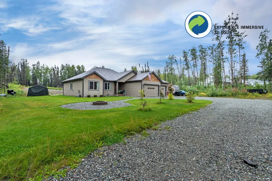 Tour this home with the 3D Virtual Tour! Ranch style home with thoughtful upgrades and elegant finish details. The three car garage and extra parking areas outside are also very useful to the Alaska lifestyles. Starting at the covered front porch and spacious entryway, this home welcomes you inside. Take a look at the inset ceiling, the crown molding, multi level cabinetry, quartz counters...