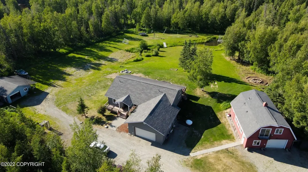 Magnificent, private, 5 acre property off Clark-Wolverine. 3 bedrooms upstairs with 2 additional rooms/office downstairs. Upstairs is open concept living with hardwood Brazilian Cherry floors throughout. Large bay window draws your attention to an amazing view of Hatcher Pass.Master bedroom has a newly remodeled Master Bath and a walkout to a hot tub (Northern Lights viewing has never been so thrilling)! Downstairs is a spacious bonus room with library-nook and fireplace. The walk-out basement leads to a huge, well maintained back yard that boasts a pond, zipline, two fire pits, swings, sandbox, and of course the most breathtaking views. The heated shop has enough space for all your Alaskan toys, tools and then some, not to mention a bathroom! Above the shop is a fully furnished studio apartment with a private entrance that is currently being rented as an Airbnb. Use this space as a mother-in-law unit or keep the cash flow coming as a rental. Studio is newly renovated, open layout, laminate flooring, modern kitchen and bath. Fire pit and walking trails surround this private escape. One more shop on the other end of the property is ready for animals with existing stalls and chicken coup. Attached greenhouse makes tomatoes in June a reality! This property is a year-round dream come true!AUD/ Airbnb brings in over $30,000 a year!!Link to Airbnbhttps://www.airbnb.com/rooms/51074876?guests=1&adults=1&s=67&unique_share_id=4af56d8f-5d35-40b7-9d0f-4212157efc3e