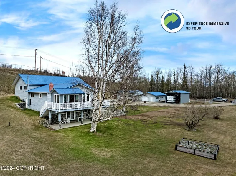 As you approach the property, you'll be greeted by a custom-crafted automatic driveway gate adorned with authentic drill bit caps from the North Slopean homage to Alaska's rugged beauty. The attention to detail continues with a stunning retaining wall featuring 40 feet of Hope stone and handcrafted metal artwork, adding another touch of Alaskan artistry to the landscape.