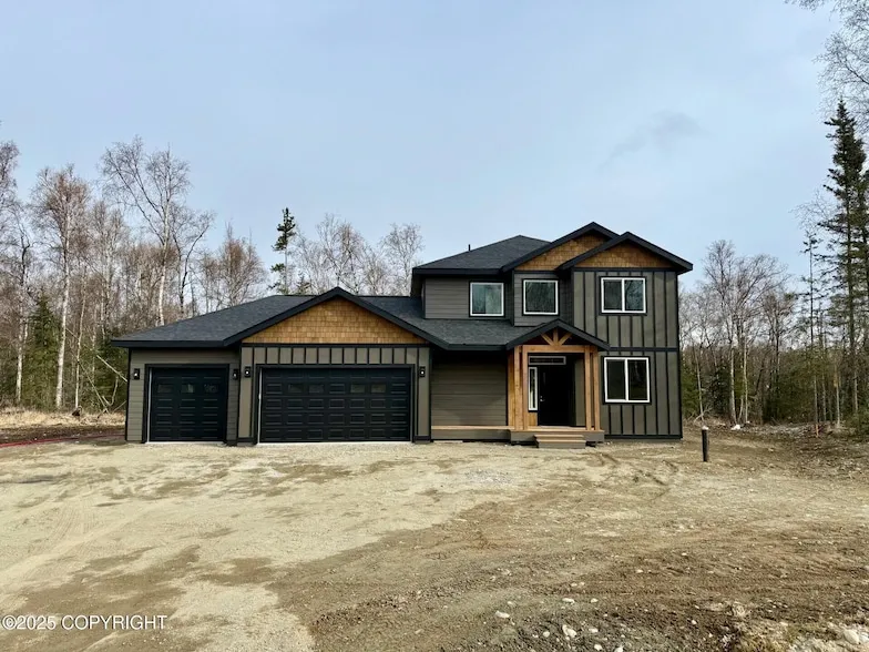 JUST FINISHED & GORGEOUS! Alliance Construction presents their popular 2 story plan w/ 4 bedrms, 1 bdrm on main level, a beautiful kitchen featuring, quartz counters & custom tile BS, a large pantry w/ butcher block counters & shelving, a beautiful gas FP w/ rock, plus a large 3 car garage! All on 1.59 AC. located in a beautiful new subdivision w/in Wasilla City Limits, easy access to everything