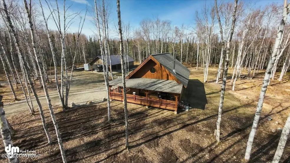 Don't miss this Alaskan custom home on over 8 acres of privacy and wilderness. Home was built with imported Douglas fir and Montanan pine. Home features a the large wrap around covered porch, Wood stove, A rustic alder kitchen with stone stamped concrete counters, A massive detached garage/ shop with tons of carport covered space for all the AK toys. Dont miss the 5ft tall crawlspace for allyour storage needs. Enjoy the cozy cabin in the woods life with so much room to grow and use over 8 acres.