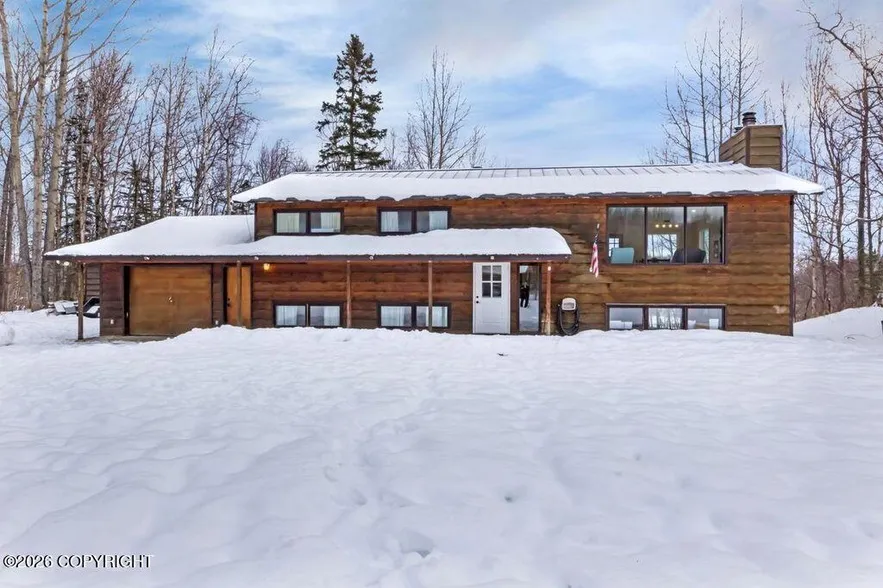 Large home on almost 3 acres near Hatcher Pass! Flat usable acres is perfect for horses, chickens, or goats! Perfect family farm. Huge open area for the kitchen, living, and dining room upstairs. Another huge area downstairs. Could be made into a duplex as all the plumbing is ready for a full kitchen on the lower level. 2 bedrooms up and 2 bedrooms down. Very spacious and roomy home. Wonderful mountain views. Close to Palmer and has a country feel and privacy. Just minutes from Hatcher Pass and multiple trail systems.