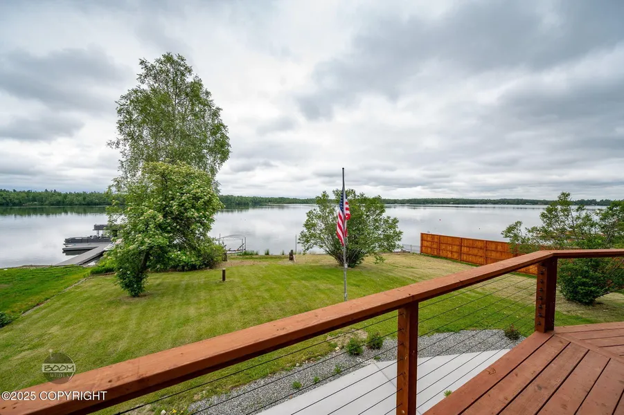 This exceptional property offers over 100 feet of pristine Lake Lucille frontage with year-round recreation at your fingertips—boating, jet skiing, kayaking, fishing, or even taking off from your private floatplane! In the winter, enjoy skiing, snowmachining, ice fishing and more. The beautifully updated home features a stunning, refashioned kitchen with new cabinetry, expansive quartz dining island, butcher block counters, full glass tile backsplash, Café double-drawer dishwasher, and new lighting. Laminate flooring flows throughout the great room, where massive windows and soaring 20-foot ceilings fill the space with natural light. The elegant staircase leads to a loft-style sitting area with panoramic lake views, and a spacious primary ensuite with his-and-her walk-in closets and a newly remodeled bathroom.