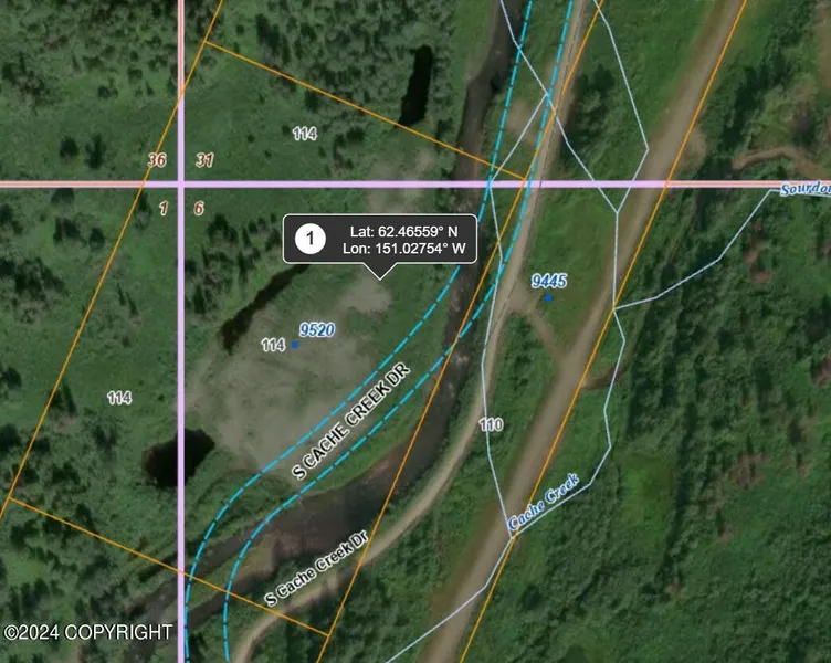 Amazing opportunity to own over 9 acres in Cache Creek recreational Subdivision! Remote yet accessible by snowmachine in winter or 4x4/ATV in summer. Great location to build your getaway, gold pan, fish and enjoy the Alaskan wilderness. Cache Creek runs through the property on SE side. Adjacent lots also for sale. Photos are from the Cache Creek/Petersville area, not specific to lots for sale.