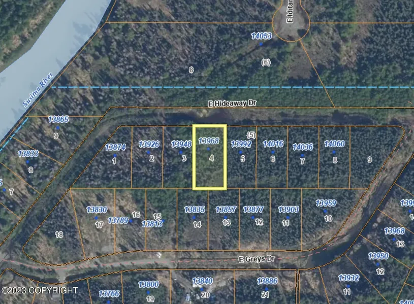 Undeveloped lot for sale in the Rustic Wilderness subdivision near the Susitna River. This particular lot is the furthest right of the lots available. Take advantage of this great opportunity to own some land and turn it into your dream! There are three lots right next to each other totaling 1.38 acres (Lot 2, 3, and 4)!