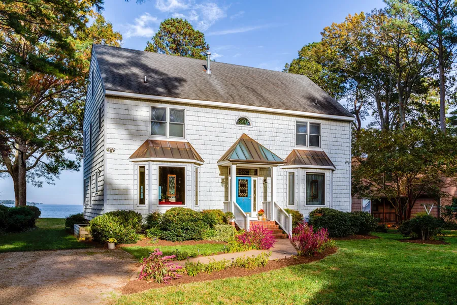 Beautiful, CUSTOM HOME built in 2001, overlooking Godfrey Bay with spectacular views of the Chesapeake Bay & Piankatank River. This two-story, Contemporary-style home has incredible views of sunrises & sunsets. This home was designed for easy waterfront living, entertaining, featuring 3 large bedrooms with water views. The Master Suite and bedroom on the 2nd level have French doors leading to a large screen porch. The open floor plan on the 1st level provides an entrance with hard wood floors, a beautiful stone fireplace & a comfortable Great room with hardwood floors. This leads to the gourmet kitchen with ceramic tile & a new 36 stainless steel dual fuel stove. All 3 full bathrooms have ceramic tile; the one on the 1st level has a double walk-in shower, the 2nd level has a tub. The BR in the Master Suite features a walk-in shower & a beautiful Jacuzzi. The French door from the Great ro...