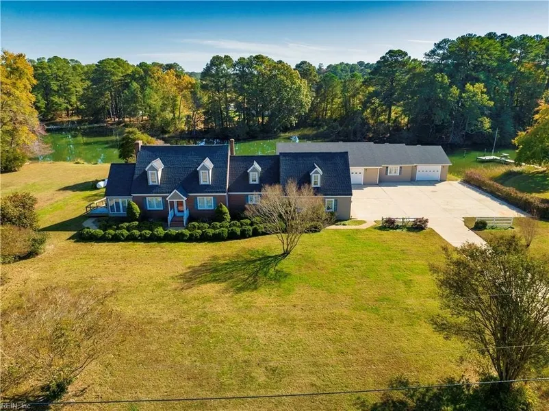 Old Meeting House Creek/Horn Harbor waterfront Brick Cape Cod on 2 Acres. Large living/dining room with fireplace, kitchen, family room (could be a first floor bedroom), 1/2 bath, utility room, & Florida room on first floor. Second floor offers 3 bedrooms and 1.5 bathrooms. This home features: hardwood floors, Roof (2017) HVAC (2012/2013) 2 zoned, whole house generator, ceramic tile, woodburning fireplace, Kinetico Water treatment system, cedar lined closet, Gas Hot water heater, replacement windows, laundry room with refrigerator, propane stove, and plenty of cabinet & a handicapped ramp. Attached 2 car garage + workshop area (1,0421 sq ft) with unfinished room above. Also a 5,289 sq' detached garage/workshop with partial HVAC- everyman's dream man cave, and great for family gatherings! Concrete patio. Beautiful landscaping and nice views on protected creek which is quick to Horn Harbor...