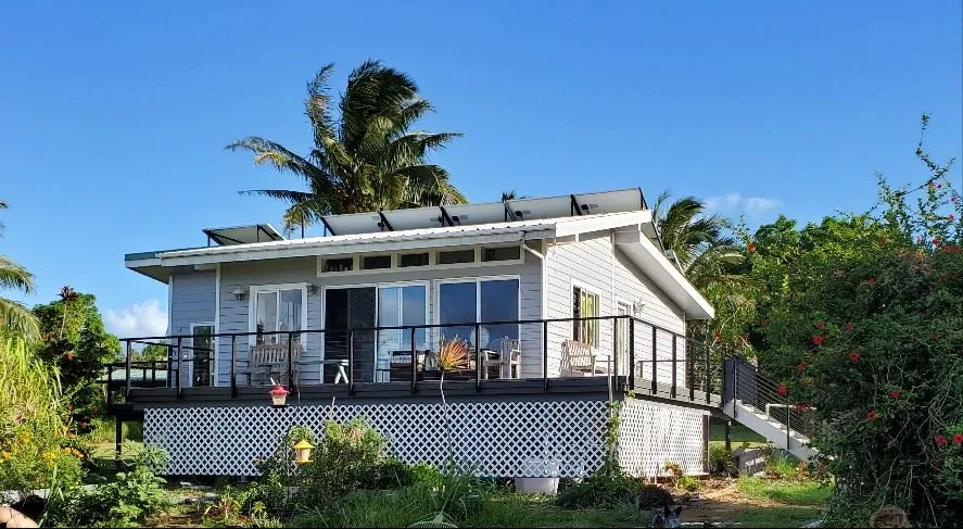 Perfectly Situated between the Mountain and the Sea, this Cottage on 2 acres is priced to sell! Wonderful Ocean View and expansive yard surrounded by privacy landscaping make this a great place to enjoy Maui Off-Grid Living. Awesome new waterproof deck with contemporary aluminum & cable railing to enhance your indoor/outdoor living while providing additional dry storage space underneath. Home is permitted as the Ohana, leaving the ability to build the Main Home of your dreams. Septic system is sized for 5 bedrooms to allow for connection to a future sizeable Main Home. Bonus structure allows for additional uses or income. Features include a 315 foot deep Artesian well, Fiber Optic Internet and owned PV Power system. This lot has not been divided by CPR, but could be a possibility. Only a short distance to Honokala Bay Ocean Access and Hoolawa Bay is just down the road. Numerous waterfall pools also in close proximity for you to enjoy the best of Maui's North Shore.
