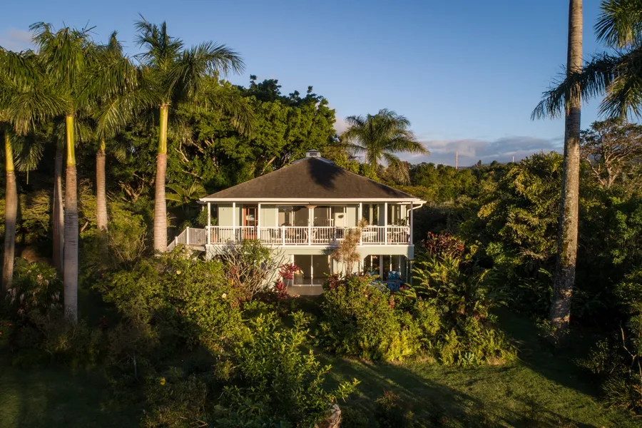 Tucked away among luxuriant gardens overflowing with exotic fruit, this charming home is close to everything you might need, but feels like its own world. Named Sans Souci (French for no worries) after the a summer pleasure palace near Berlin, the property embodies an ideal of harmony between man and nature, in a landscape ordered by human touch. Ocean views, enchanting mosaics, and a light-filled atrium give the home a sense of serenity, and the covered lanais upstairs and downstairs provide the perfect perch for contemplating the lush gardens, abundant organic orchard, and the tranquil sea beyond. The upstairs includes an open floorplan living space, with a newly renovated kitchen, a bathroom, and two bedrooms. The private, soundproofed lower levels two bedrooms, bathroom, and wet bar make it ideal for visiting friends or family. A solar photovoltaic system provides all necessary elect...