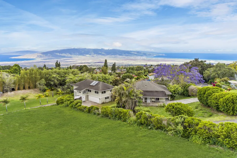 Looking for a large ocean view estate with multiple separate living areas for extended families or extra income potential? Look no further with this half+ acre Kula property, which includes a studio ohana attached to the main house, and an additional detached 2-bedroom cottage. This spacious lot has enough room to build an additional dwelling and/or a pool. Both the main house and the cottage have incredible ocean and mountain views and feature lots of natural sunlight with impressive view windows throughout. This property also features a detached private deck with huge ocean views, ideal for BBQing, entertaining guests, and watching the sunset. The cottage is extremely private, boasting its own separate; driveway, 2 car carport, separate address for secured mail delivery, laundry, electric meter, and wrap around balcony. Included on property are beautiful blooming jacaranda trees, garden/herb beds, and various tropical plants including orange and lemon. Enjoy the freedom of no HOA, and the absence of parking and other misc. restrictions. Enjoy the best that Upcountry Maui has to offer at Kula Orchards subdivision near Kula Lodge! Kula Orchards is one of Kula's most charming communities, boasting large lot sizes and a traditional Hawaii feel, with exceptional value and breathtaking ocean views. Walk to Kula Lodge for breakfast or lunch, and enjoy the Kula Marketplace, or enjoy the nearby hotspots including Poli Poli hiking trails, Rice Park, Kula Bistro, Alii Kula Lavender Farm, La Provence Bakery, and the Upcountry Farmers Market. The staging items such as furniture, artwork, plants, and the like portrayed in these photos have been created by computer generated image technology and used for illustration purposes only. No real, actual or physical staging items are included in this sale.