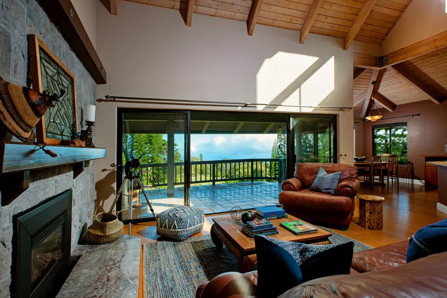 They have lovingly cared for this property for 25 years, enjoying the North shore ocean and pastoral views and the sounds of silence from living at the end of a private road. They planted fruit trees and grew their own organic vegetables and herbs. The weather, in their opinion, is perfect cool in the summer and crisp in the winter. For those crisp days there is a gas fireplace and a hot tub to take the chill off.