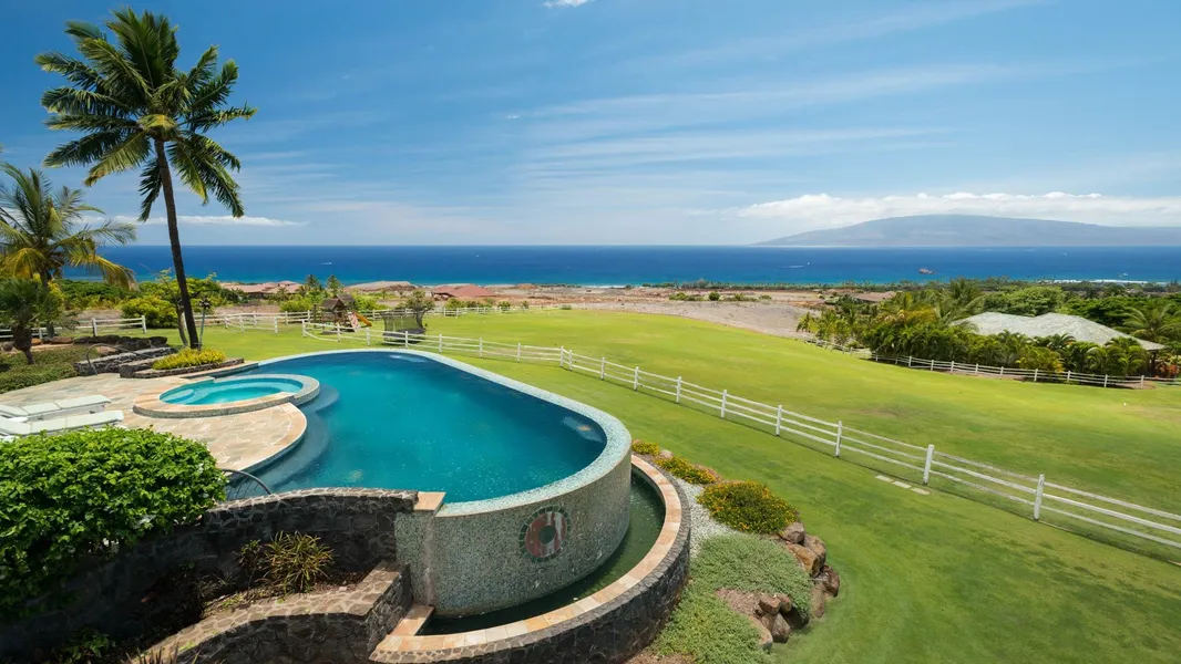 Located in prestigious Puunoa, this is one of Hawaiis most desirable gated luxury estates, offering tranquil tropical living with the ultimate in privacy and security. Gracing the gentle slopes of the West Maui Mountains, this 5-acre fully manicured estate, lush with a variety of fruit trees and tropical landscaping, boasts of breath-taking panoramic tri-island ocean views, stunning sunsets and majestic mountain backdrops with bountiful picturesque rainbows. 65 Wili Okai Way features the best of style and modern amenities in a spacious and elegant custom-built, 5 bedroom 5.5 bath main residence. The separate 2 bedroom 2 bath guest home is privately situated with its own gated access. Both homes also showcase abundant, covered, wraparound patio space. As your day begins, take in spectacular sunrises over the West Maui Mountains, embracing the sweeping views and fragrant trade winds while taking advantage of the easy access to private trails for walking, jogging and biking to popular beach parks. The one-of-a-kind outdoor shower, custom outdoor kitchen, and expansive, air-conditioned, multi-purpose modern barn make indoor/outdoor recreation easy and comfortable. If you desire world-class shopping, restaurants and entertainment, all are conveniently located in nearby Lahaina, Kaanapali and Kapalua. When youre ready to wind down, relax in the dramatic infinity-edge saline pool, while you listen to the gentle sounds of the nearby cascading water feature, or soak, in your custom in-ground hot tub while enjoying the dazzling sunsets and clear, star-filled night skies. Nestled among beautiful flowering hedges, this property also reveals a highly sought after, comprehensive, energy- efficient, net-metered, photovoltaic system that minimizes electricity expense through renewable energy. The level of craftsmanship and detail in this grand estate is of the highest quality and finishes, including incredible custom metal work from famed artist, Larry Padilla, on display throughout the property from the custom metal entry gates to the fire torches, accent rails and various other architectural elements.