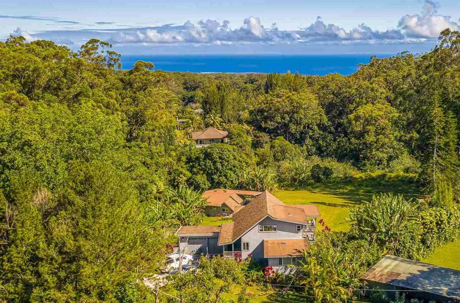 Experience the tranquility and privacy of this spacious renovated 2.06 acre estate located at the top of Maui Ranch Estates on a quiet Cul-de-sac. It has an open floor plan with high ceilings, large windows for great lighting & endless possibilities. LR features a one of a kind gas Stone fireplace, with a large built-in lighted cabinet in the adjoining Sunroom. The home has Paradigm Island Collection wood flooring throughout, and two large covered decks. The kitchen features solid wood & glass cabinets, specialty shelving, stainless steel appliances, double oven, exotic granite countertops, and full height granite backsplash, plenty of counter and storage space and nearby dining area. Lighting throughout the home features Palm fans, Capis shell decorative lighting and recessed fixtures. The entire house has prewired behind wall media set up for wireless connections for all your work or play. The Main level master bedroom has a large Spa bathroom with a walk-in shower, a deep Jacuzzi soaking tub, quartz sea glass double sink vanity and a washer/dryer. A separate meditation/massage area is located conveniently next to this bathroom. The upper level has a roomy tall Loft with a pretty view, a walk-in closet and its own bathroom with glassed but private barn doors. It also has another room perfect for Office or Nursery. All bathrooms have travertine tiled walls and floors with Tommy Bahama decorative glass tile trims & pebble style tiles in showers. There is a large finished lower level with its own bathroom that could be used as a Private Master suite or mother-in-law quarters or an art studio. Full windows & large slider on one side make the light amazing. It is ADA accessible, includes a washer/dryer a High end heat & A/C unit and its own covered deck. From Outside the home has lovely curb appeal with beautiful plants & boasts a new curved oversized concrete driveway with plenty of parking. The 2 car garage has lots of shelved storage In addition to a large under house storage area. From inside - All spaces overlook the lovely landscaped tranquil property. This property has been updated with a newer large capacity septic system. There is a detached accessory building that is accessed through a separate driveway. Huge landscaped yard with colorful tropical plants and many fruits. Private and quiet location in a safe and established neighborhood.