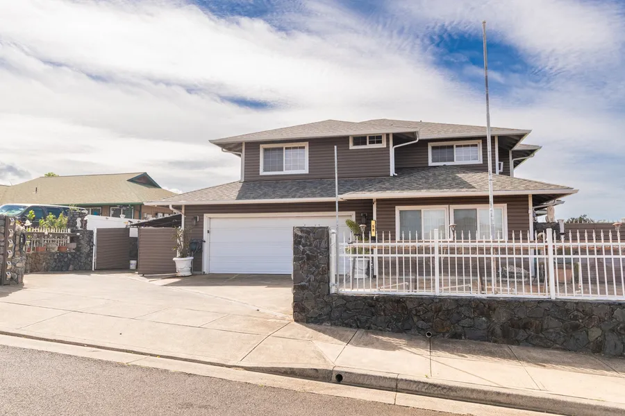 This two-story, four bedroom, three bath home is located in the heart of Pukalani. The first floor features a spacious living room with high ceilings plus a bonus room (a great space for a den or playroom), a large kitchen and dining room. Off the entry you'll find a full bath and bedroom. Upstairs are two more bedrooms sharing a full bath. The large master offers a master bath, walk-in closet and an enclosed lanai making this a wonderful private suite. This home has been designed for very low maintenance including catchment watering systems for the yard, automatic sprinklers, a large greenhouse and two raised gardening beds. There is also a large storage/potting shed. 20 PV pane makes this home energy friendly, roof replaced 1 year ago, siding replaced about 2 years ago. Pukalani Highlands offers a perfect upcountry location, just minutes from schools, shopping, dining, and a short drive to central Maui.