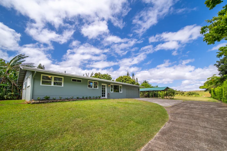 This classic Haiku farmhouse sits on 2.28 acres of quiet, private rolling pasture land. It comes with a large covered corral suitable for big outdoor family events, or sheltering horses or a few head of cattle. An oversized 2-car garage has an attached storage room as well as a separate laundry room/bathroom. Recently painted inside and out, new windows and new on-demand hot water heater. Plenty of room to expand the home or build a barn. The huge grass paddock has beautiful ocean and surrounding mountain views from the top. There is an existing stand of producing banana trees and lots of room to grow more food. Ideal location, close to many restaurants and shops. 12 minutes to Makawao town, 7 minutes to the Pauwela and Haiku canneries with grocery and hardware stores.