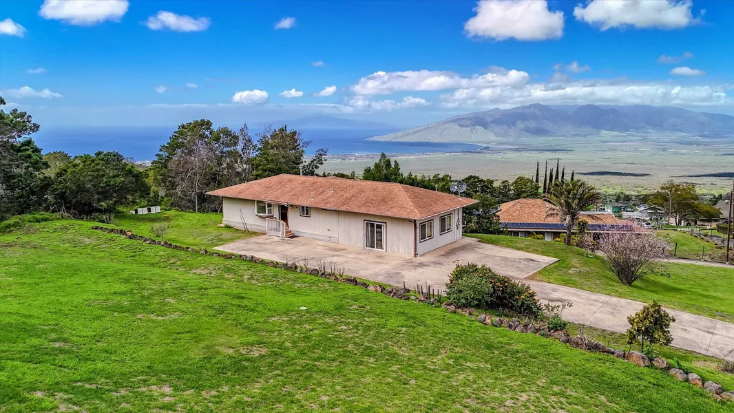 This is a Department of Hawaiian Homelands Leasehold property. Welcome to this beautiful single story home with a split floor plan two bedroom, two bath on opposite ends of the house. Large open concept floor plan with kitchen, dining and living room in the center of the house. This great entertaining space opens out onto its own lanai for outdoor bbque's and watching the sunset's. Master bedroom has a peer-to-peer gas fireplace in the wall between the living room. Both of the bedrooms and the living room have their own expansive lanai's with amazing West Maui mountain shore to shore views. The 528 SF garage has been enclosed and may be non-conforming. This cute house sits on a large lot just over one half of an acre with a variety of fruit trees and proteas. Any and all Buyers MUST be 50% Hawaiian and qualified with DHHL.