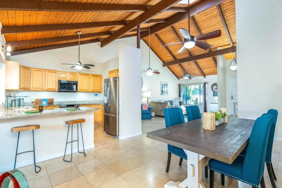 Incredible value awaits in South Maui! Consisting of a spacious and updated main house with multiple zones of AC, solar PV system, custom knotty pine vaulted ceilings throughout, skylights, travertine and engineered hardwood flooring, a new combo washer/dryer, and a well thought out granite kitchen ideal for entertaining family and friends. Spectacular private and fenced organic garden with water features and mature areca palms to enjoy year-round. Additionally, there is a one bed/one bath ohana with a separate entry that is equally upgraded with a new stove and microwave which creates additional opportunities to rent for supplemental income, use as a mother-in-law suite or simply enjoy the additional dwelling space. Enjoy no HOA fees and a true indoor/outdoor garden centered Hawaii lifestyle. Centrally located in the heart of Kihei within a short distance to a multitude of Kihei's top beaches, dining, shopping options and various top recreational activities such as golf, paddle boarding, snorkeling, and whale watching for quintessential Maui living. This is a must see!