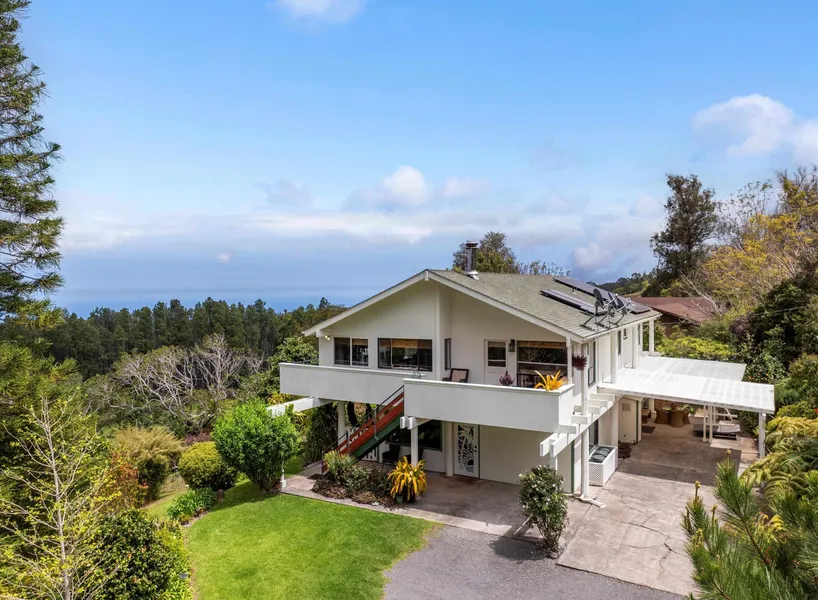 Escape to your own private paradise in this beautifully remodeled Upcountry home, perched just above Olinda Forest. This stunning two-story residence offers breathtaking ocean and mountain views, a lush park-like setting, and the perfect blend of comfort, privacy, and versatility. Featuring 3 bedrooms, 2.5 baths, and 2 separate living areas. The crisp Upcountry climate, combined with the abundance of flowering plants and producing fruit trees, creates a serene and rejuvenating environment. Upstairs, you'll find an expansive open-concept living space with vaulted ceilings, seamlessly connecting the kitchen, dining, and living room. The newly remodeled kitchen boasts elegant quarts countertops, perfect for both everyday living and entertaining. The wood-burning fireplace adds a cozy touch on cooler evenings, while air conditioning ensures year-round comfort. The master suite is a true sanc...