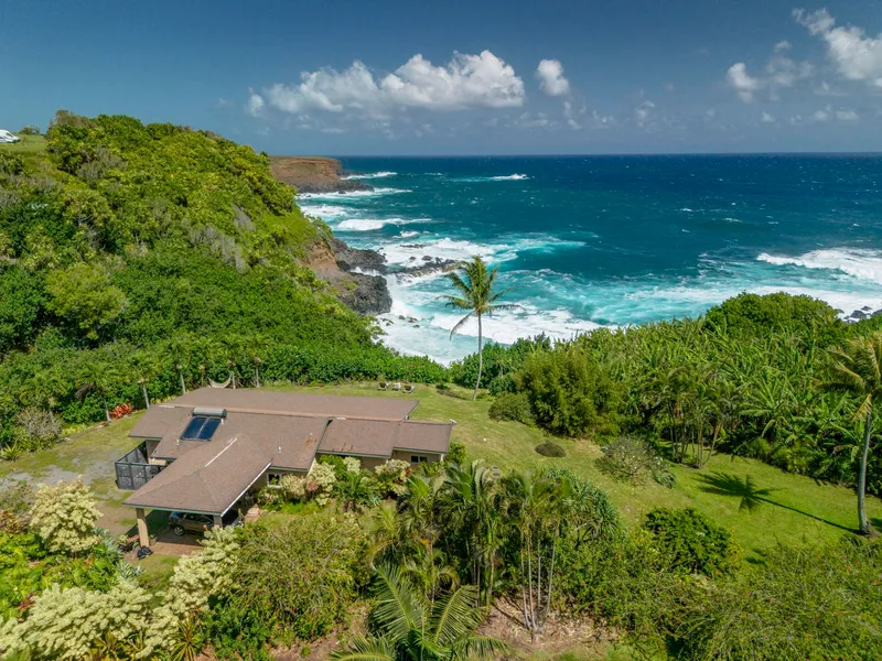 Breathtaking Front Row seat on the Ocean, there is nothing like Heavenly Honokala in Haiku. First time on the Market, enjoy rare Oceanfront Off Grid seclusion in this well built Custom Home on over an acre. Spectacular location on accessible Honokala Bay, "Harbor of the Sun." Hear the waves crash & watch the whales frolic in your own little slice of paradise, with no neighbors visible from inside the home. ICF (Insulated Concrete Form) & Stucco construction, with Stamped Concrete floor is built to last. Porte-Cochere entry, stylish & functional. Open concept entry/kitchen/living area opens directly to Spacious Lanai and the Ocean beyond. 2 bedrooms, 2 baths - one on each end for privacy with giant Ocean Views & access to Lanai. Bright white Kitchen with Granite counters. Soaring extra height ceilings give an open and airy feel. Generous sized Outdoor Shower. All one level for easy access...