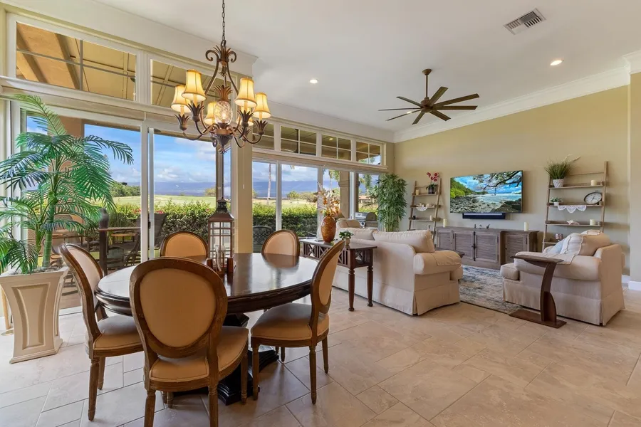 Experience luxury living in Hokulani Golf Villas with this beautifully appointed 2-bedroom, 2-bath & Den home. Featuring high-end finishes, tasteful furnishings (included), and an open-concept design, this residence offers effortless style and comfort. Enjoy indoor-outdoor living with spacious lanais, Built-in outdoor kitchen, elegant upgrades throughout, and the convenience of single-level living with an oversized 2 car garage. Amazing Haleakala Views and no neighbors in your backyard. Plus let maui's perfect sunny weather cover most of your electric usage with the owned solar panel array and Tesla Battery. Set in a gated community with a stunning infinity-edge pool and clubhouse, all just minutes from South Maui’s best beaches, dining, and golf. Hokulani Golf Villas comes with the privacy and space of a free standing single family home, plus the convenience and amenities of condominium living. A turnkey opportunity in one of Kihei’s most sought-after neighborhoods. Also listed as Condominium MLS #406180