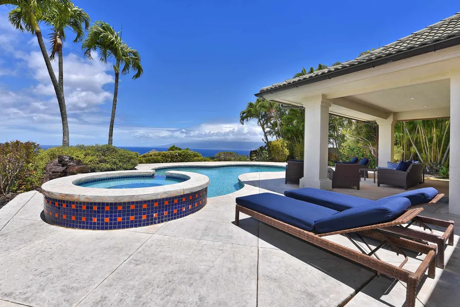 Outstanding ocean, Lanai, Molokai, and sunsets from this single level residence at the top of Pineapple Hill at Kapalua, one of Maui's finest master planned communities. Single level floorplan with no steps for easy access throughout this immaculate, well laid out home originally built by one of Maui's finest custom home builders Gary Dixon, as his personal residence. Tropical landscaping at its very best. Freeform pool and waterfall spa add to your personal enjoyment. Two car garage with additional storage also includes central air. County records show this as a 3 bedroom, 3 1/2 bath home but the large office with its own bath technically does not have a closet.