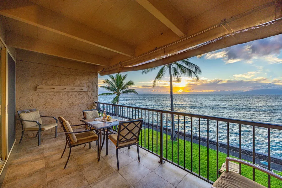 Welcome to Lokelani A205. This extremely rare direct Oceanfront 2 Bedroom/2 baths unit is located in one of the most sought-after condo complex in West Maui. The spacious two-story unit boasts 2 direct oceanfront lanais where you will be able to enjoy year-round sunsets and whale watching from the primary bedroom and the main living area. Both bedrooms are located upstairs. A205 is a highly popular rental unit, as it will provide you and your guests with all the necessary amenities for an amazing Maui stay (very efficient split AC system, fully equipped kitchen and washer and dryer in the unit). Water sports enthusiast will enjoy a fun break directly out front. The Lokelani complex provides easy and convenient access to restaurants and grocery stores, and is located near the world-class Kaanapali and Kapalua resorts renown for their spectacular beaches and golf courses.