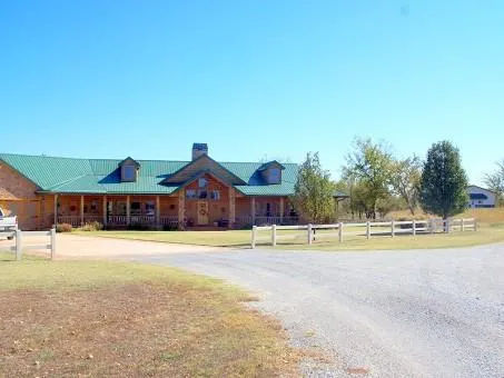 This fabulous property is located in Mayes County, OK. In Northeast OK. 45 min to Tulsa, 20 min To Grand Lake & Lake Hudson. It is a gated property w/4148 sq ft custom home. and a 5 stall Morton Horse barn complete with wash rack, vet area & feed room / tack room. There is a drive through alley way, complete with 4 separate runs into each stall, equipped w/automatic waterers. 30 x 48 shop building with 3 open drive through bays and a separate enclosed area w/ overhead door.There is a cupola on top off each barn. The house was built in 2005. It has central heat & air, metal roof. Covered front porch & back patio. It has stamped concrete porches and driveway. It has a slab foundation, The home has 3 lg full bedrooms each w/private bath. There is a powder room, and a separate office, dining rm, and separate family rm. It has a massive rock fireplace, log beamed cathedral ceiling in the for...