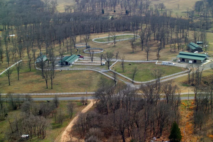 Equestrian property like no other in Oklahoma, with top-shelf hunting opportunities and excellent pastures for hay and/or cattle production. Mature trees provide a stunning back drop to a professionally designed and meticulously maintained horse farm that includes a lighted arena, two lighted round pens with Clinton Anderson "patience poles", eight horse stalls, veterinary racks, two heated and well-ventilated horse barns, multiple paddocks and run-outs, large hay storage barn, 5,800 sq. ft. shop built with in-filled concrete block, insulated and heated, includes five 10' doors. The largest of three ponds is several acres in size and can hold substantial fish population. Asphalt road top, fire hydrants, 400 amp electric utility system, and beautiful vinyl fencing are just a few of the included amenities. In fact, the detailed list of amenities is so long, we had to put them on a separate Word document. Be sure and register so you can see everything that has been built into this amazing ranch!