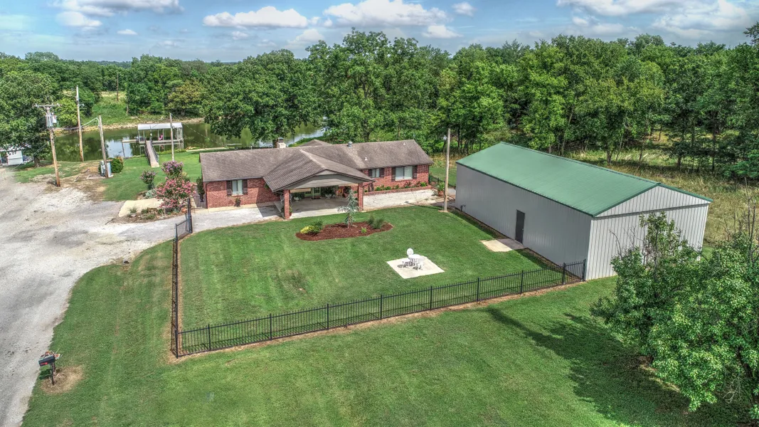 Gorgeous updated waterfront home on 3 acres w/gentle slope to the water, 2 slip dock, 26x50 detached garage/shop. Home features antique island from Skelly Lodge, granite countertops ss appliances, fireplace, pergola, deck ideal for entertaining, Florida room and inside cellar. a lot here to appreciate.