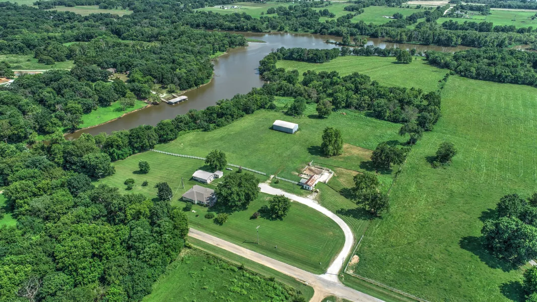 Beautiful 25+ acres w/ 1/2 mile waterfront, gentle slope to water, deep and dockable. Some treed areas, pasture, ideal for future development potential. Well maintained home features 2 living areas, lovely yard, 28x40 det. garage/shop. Haybarn, well house, old milk barn. Ideally located to both Grand and Hudson lakes in Adair schools.