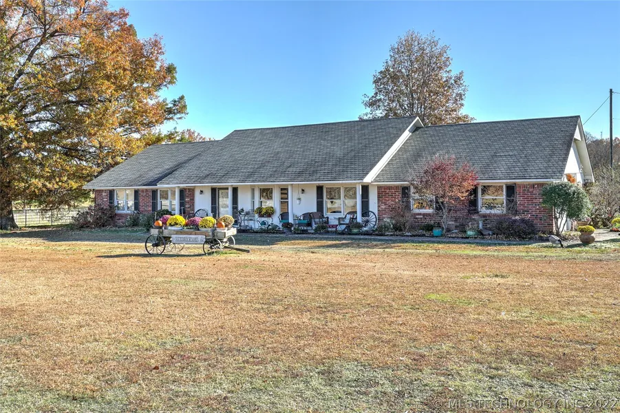Beautiful 4 bed 3 bath brick home with Large family room, formal dining, vaulted ceilings, wood burning fireplace in living, and wood burning furnace on back patio. Updates include completely remodeled bathrooms, new paint, and much more. Also included is a 40x60 shop with 1 bed, 1 bath apartment upstairs, and 40x72 3 stall Barn and roping arena all on 8 Fenced acres, would be prefect for horses. Seconds from turnpike with easy access to Tulsa. Owner/ Agent