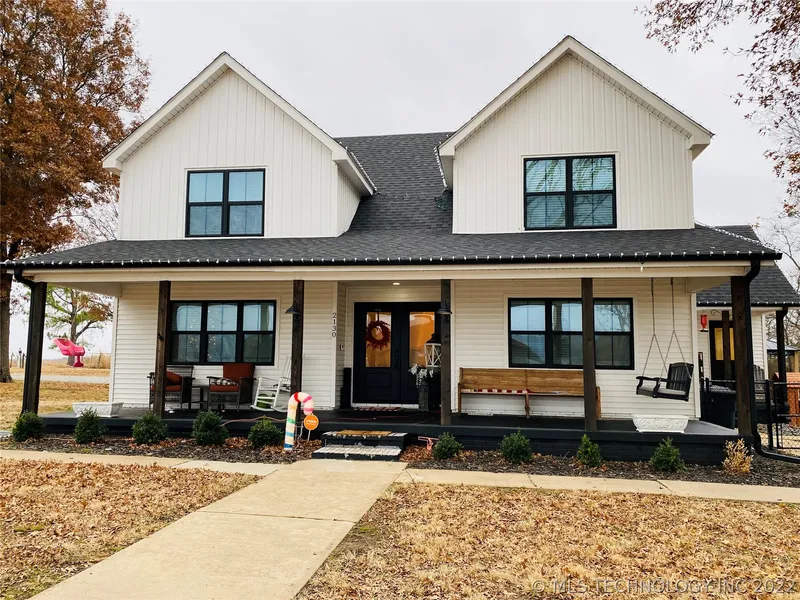 Exquisitely remodeled, modern farmhouse style home situated on 1.77 acres m/l. This home was completely renovated in 2020, with everything new. This spacious home features 4 beds, 3.5 baths, and 2 car garage. There are two shops on this property. The large shop (Built 2022) is a total of 2,400 sq. ft. with 800 sq. ft. of living quarters. There is 1 bed, 1 bath, with kitchen and living area in the living quarters that has the same finishes as the home, with nothing spared. It also has 2 overhead doors for RV storage. The 2nd shop is almost 800 sq. ft. with 2 car garage door and a loft for extra storage. The yard is adorned with gorgeous mature trees, including fruit and pecan trees. Located a convenient distance from industrial park and highways.