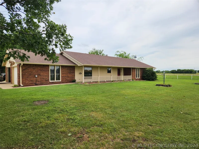 Beautiful well maintained home just North out of Pryor on 20 acres with pipe fencing, fenced & cross fenced ideal for horses with riding arena, barn with stalls, sheds and excellent pasture. Home features large great room with pellet stove insert in fireplace, beautiful hardwood flooring, spacious kitchen/eating area with ample cabinets & newer appliances, nice laundry room, enclosed patio and roomy size bedrooms. See to appreciate all this property has to offer just outside of Pryor!