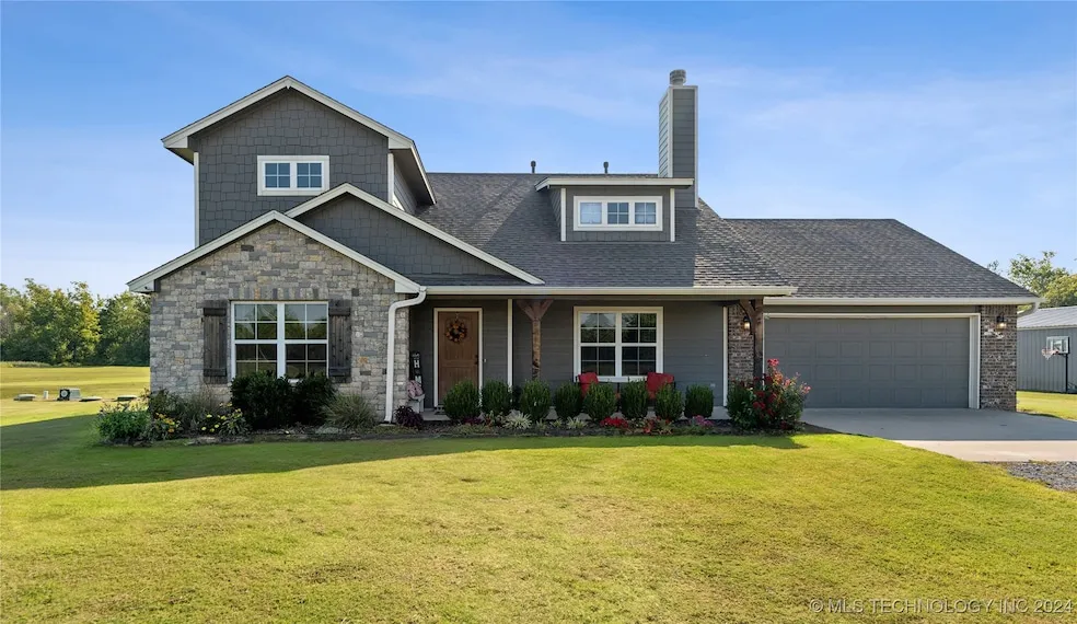 10.58 ACRES and country home for sale in Pryor OK! Don't miss out on this peaceful and quiet 10.58 acre parcel located on a dead-end road. This custom home was built by a local builder in 2019 and contains 4 bedrooms and 2.5 bath. You will love the spacious living room with wood beams that is open to the kitchen and dining area. Kitchen features granite with island and lots of cabinets and all appliances stay including the refrigerator. Right off the front entry is the home office (could be used as a fifth bedroom) awesome for working from home. Master bathroom features 2 sinks, walk in closet and a very nice sized shower. Large laundry room is off the kitchen and exits into the two car garage. Covered back porch is perfect for enjoying the outdoors and enjoying time with the family in the backyard. The property also features a 30x40 shop with lean to that is fully wired for electric and ready to use. This property location is convenient with easy access on blacktop roads to Hwy 69. Close to "The District " shopping, restaurants and city life..... 5 minutes to town, 45 minutes to Tulsa and less than an hour to Arkansas. Quiet and peaceful area with lots of wildlife to enjoy. Plenty of room to bring your animals, plant your garden and enjoy this "move-in ready" 10.58 acre property !!