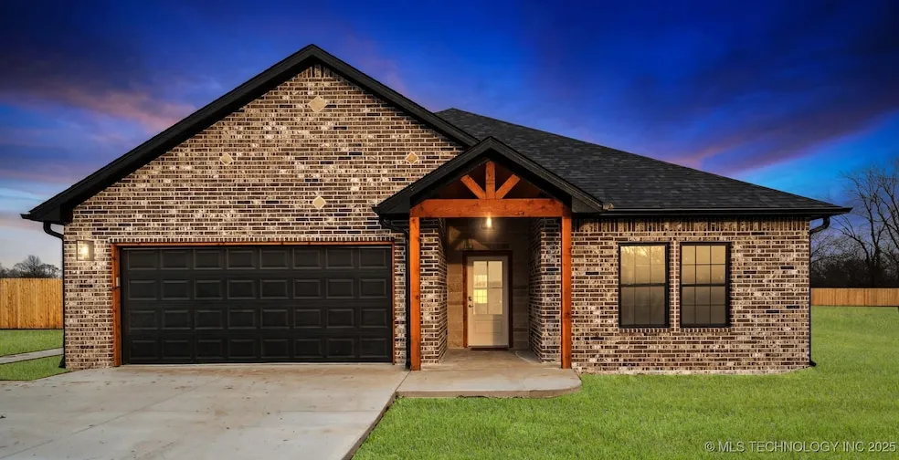 Seller is offering $10,000 towards closing costs or buyer rate down!!! Awesome, new construction single-story home featured A modern design. The house has large windows, a sleek exterior with a mix of brick and siding, and privacy fenced backyard. The front entry includes a drop zone area with hooks and shelves for coats and bags. Inside, the open floor plan boasts vinyl laminate flooring throughout, and a spacious island. The home has an oversized, two car garage, designed to accommodate large vehicles, with a clean and organized layout. The ceiling rafters are foam insulated for energy efficiency. The overall design is spacious, bright, and inviting. Schedule your showing today!