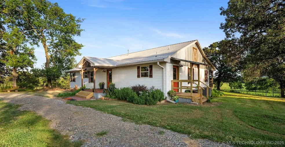 Welcome to Bitter Creek Ranch a rare 101-acre gem located in the heart of Northeast Oklahoma, offering the perfect balance of beauty, privacy, and functionality. This working ranch is set up and ready for your family, livestock, and country lifestyle dreams. The property features prime pasture and hay meadows, ideal for grazing livestock, along with a cattle corral and a secure gated pipe entryway for convenience and safety. Horse lovers will appreciate the 40x60 horse barn, complete with five stalls, a feed room, and a tack room all thoughtfully designed for smooth daily operation. At the heart of the ranch sits a beautiful rustic 3-bedroom, 2-bath home showcasing warm woodwork, a vaulted living room ceiling, and a cozy wood-burning stove. A dedicated home office offers the flexibility to work remotely while enjoying the peaceful countryside. The spectacular wrap-around porch provid...