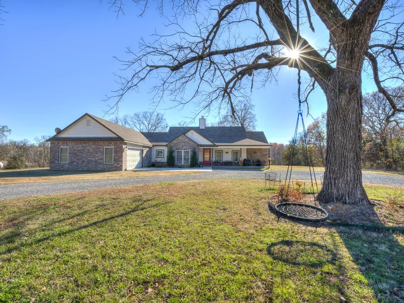 This beautiful "Southern Living" custom 4bed 3bath home on 5.3 acres +/- is fully decked out! No corners were cut when this energy efficient home that was built in 2015. The open floor plan boasts a very spacious kitchen with all granite countertops, Viking stainless steel appliances, custom soft shut cabinetry, and wine refrigerator. The kitchen opens smoothly to the family room making it the perfect home for those who like to entertain. All hardwood floors throughout are comprised of gorgeous distressed birch wood. 4 bedrooms and 3 full bathrooms are great for a starter or growing family looking for plenty of space. The two-car garage is oversized allowing for shelving or additional storage. Tucked off the asphalt road this gorgeous property is pipe rail fenced along the road and an automatic/keypad gate provides security. The acreage is mainly comprised of excellent improved grasses pasture ground perfect for a horse a few animals. A small amount of woods and pond provide refuge for the wildlife that frequent this fantastic property. You can literally enjoy watching deer right of your front or back porch while enjoying your morning coffee. Only 5 minutes south of Locust Grove and quick access to both Tulsa and NW Arkansas makes this location very desirable. Enjoy the benefits of living in the country and being able to quickly get to the big city by calling this place home. Schedule an appointment to get your own private tour. Pre-approval / proof funds required prior to scheduling showing.