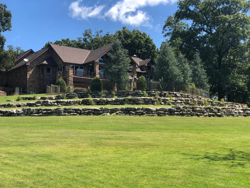 This 7,000 sq. ft.of living space, 3-story house with walkout provides all the rustic elegance you would expect to find. The beauty of nature is perfectly incorporated inside with rock and log accents throughout. No detail was spared. There is no shortage of space for your family and friends either. This home has 2 kitchens with chiseled edge granite counter tops, stainless steel appliances, abundant cabinets, large walk-in pantry, and lots of culinary space. The 2 grand living rooms each boast a large stone fireplace, which run on gas or wood, and expansive decks that provide views you will never tire of. There are 5 bedrooms each with their own full private bathroom. The master bedroom has it's own stone fireplace, huge walk-in closet, and doors that lead out onto the deck. There are 2 additional separate bathrooms for a grand total of 7. Included in this breathtaking home is an office, in house gym, large laundry room, craft areas, and an extra large 4 bay 1,800 sq. ft. climate controlled garage. High-speed fiber optics is already in place. This house has it all.