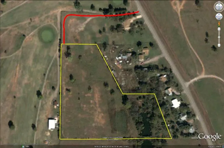 Nearly nine acres with easy Hwy 76 access. Great fishing pond, city water tap on property, land joins Lindsay Golf course, partially fenced, good soil & grass, level and ready for that new home you've been planning to build. Red path on aerial depicts road easement.