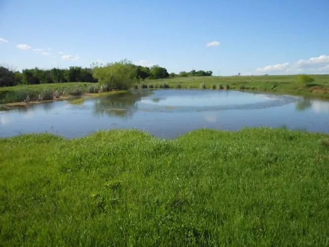 The terrain is a combination of rolling hills with a small amount of timber and traditional Oklahoma red pits.