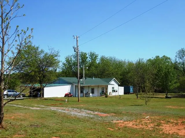 Fenced area for livestock. Storage building.