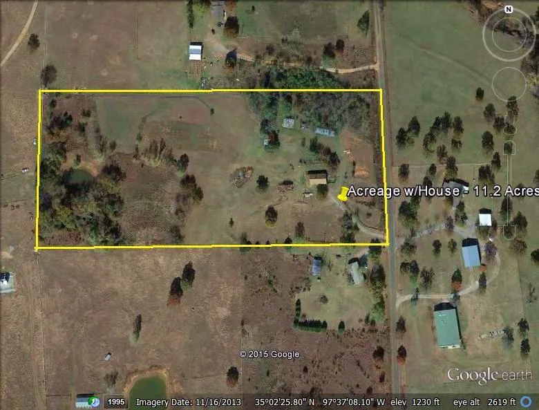 11.2 Acres South of Blanchard. Old homestead & outbuildings to be sold as-is. Home needs foundation work. Well & septic. Storm Shelter. Pond at back of property. Good access. Has blacktop road coming off Hwy 39 to property.