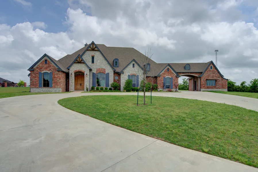 French Country Home in Manor Lake Hills is situated on a cul de sac and has a circle drive, breezeway/porchere & courtyard for parking. Enter elegant double doors to views out the back, great room and dining room w/wet bar nook.