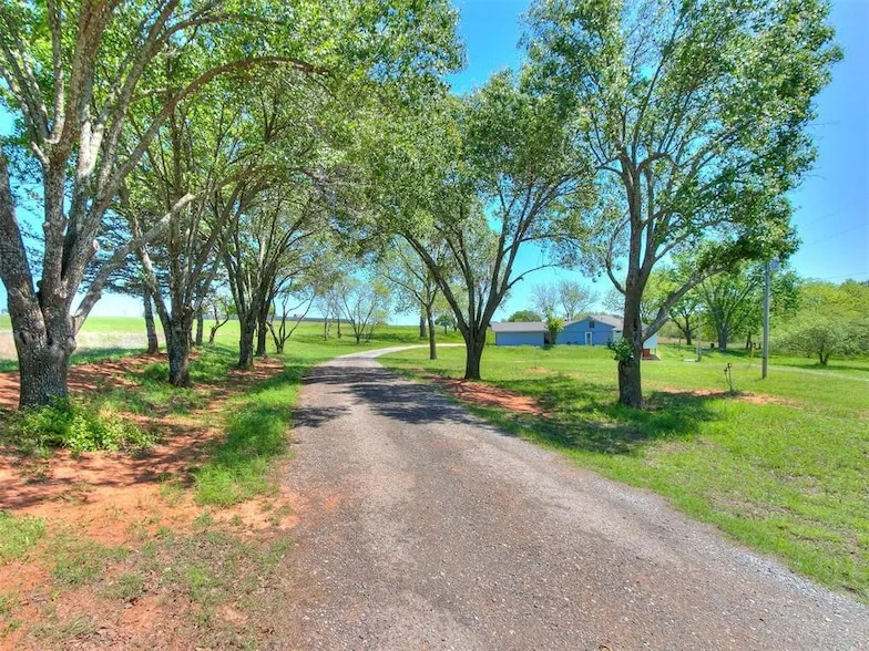 Country style living in a Home that sits on 8.74 acres with a shop, well & septic. Home has 3 Beds, 2.5 Baths, 2 Living Room areas, 2 Dining areas. The Large Kitchen and LIving room are open concept with a big Island, Stainless Steel appliances, Gas Range/Kitchen Stove top. There are two fireplaces: one has electric logs and the other is wood burning. The total acreage is 8.74 acres. There are No HOAs. Beautiful land with trees on 50% of it. This home has a Brand new Roof installed March 2024. Roof invoice & warranty is uploaded in supplements. Survey is uploaded in supplements. There is a 400' size Car port, 30 x 50 Shop Building, a 2nd Metal Shop (no door) that is 432, a 160' Utility Building, Well house, and a Donkey Pen on the property! Schedule a showing today! The history of the wood trim in the house was harvested from a property being torn down in Kiowa County in the 70s and sellers used this with much of it is stamped "OT" (Oklahoma Territory) on the back. When sellers bought the Washington property and remodeled they used it throughout the house. Also, the seed bins in the kitchen came from an old general feed store called Keller s Seed Co in Shawnee ( owned by 3 generations) and sellers installed seed bins for additional storage in the kitchen for an old farmhouse look.