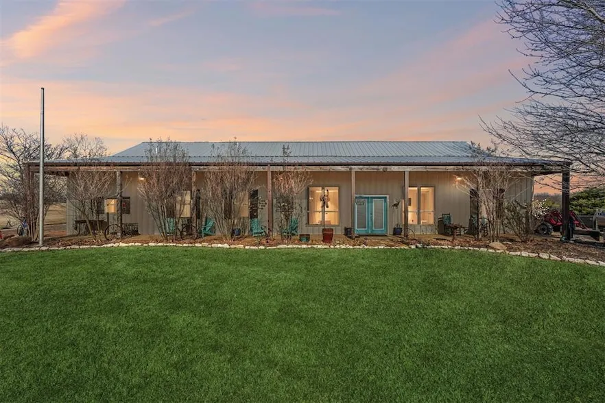 Designed as a private Oasis, 518 South Portland Avenue in Newcastle is a rare convergence of luxurious engineering, artistic expression & enduring craftsmanship, custom built in 2013 and surrounded by 10 acres of secluded Oklahoma landscape, just minutes from modern conveniences. Accessed by a private road shared by only four residences, this ICF-constructed Barndominium offers exceptional structural integrity, energy efficiency, and quiet comfort. Every aspect of the build reflects intentional engineering choices designed for longevity, performance, and daily ease. Inside, three bedrooms and 3 Bathrooms and a half bath balance openness with retreat. A spacious living room flows into a large dining area, ideal for everyday living and entertaining. A laundry area and side entry with a beautifully painted mud area add functional elegance. The kitchen features granite countertops, two oversized islands with cabinetry, a built-in gas cooktop, double ovens, and slate floors, creating a space that is both artistic and livable. The primary suite is privately positioned, showcasing painted artistic wood detailing, a whirlpool soaking tub, and an elegantly tiled shower. On the opposite side, two additional bedrooms are separated by a private hallway, with a secondary bathroom and custom-shelved closet between them. A central vacuum system is seamlessly integrated. Deer and wildlife are frequent visitors, reinforcing the property s sense of privacy and connection to the land without sacrificing modern comfort. Exterior features include metal siding and roof, covered front and back porches with exposed wood beams, an attached two-car garage, a one-acre pond, wooded acreage with a dam, open land, a 30 x 50 shop with concrete flooring, and an above-ground pool. Served by public water and natural gas. Tucked discreetly behind an existing development, the property unfolds into a world apart your new Oasis. Paradise isn t promised here. It s already present.