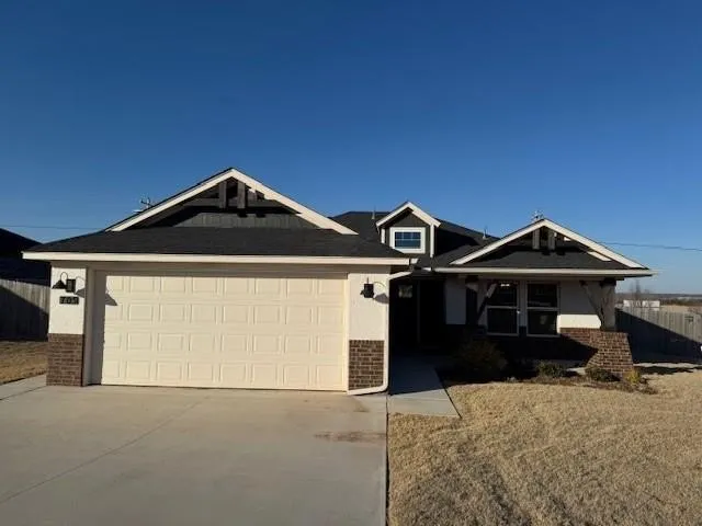 BRAND NEW ENERGY EFFICIENT CONSTRUCTION in the Oasis Ranch community in Blanchard. 3 bedroom with the master suite to the front of the home. Secondary bedrooms to the back and opposite side of the home for privacy. Wood look tile throughout the main living areas with carpet in the 3 bedrooms complete with ceiling fans. Kitchen island overlooks the living room. Stainless steel gas range with built in microwave, dishwasher, disposal and pantry. Covered back patio with large fenced yard, pet friendly with additional refundable pet deposit.